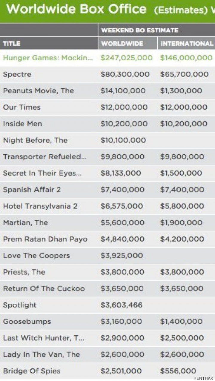 Además, Ocho apellidos catalanes se ha colado en el puesto noveno de las películas más taquillera del fin de semana a nivel mundial. La nueva cinta protagonizada por Dani Rovira y Clara Lago y ambientada en Cataluña ha superado en sus tres primeros días en cartelera a Ocho apellidos vascos, que logró 2,8 millones de euros.