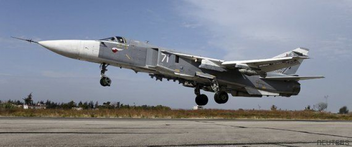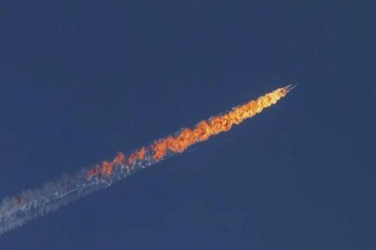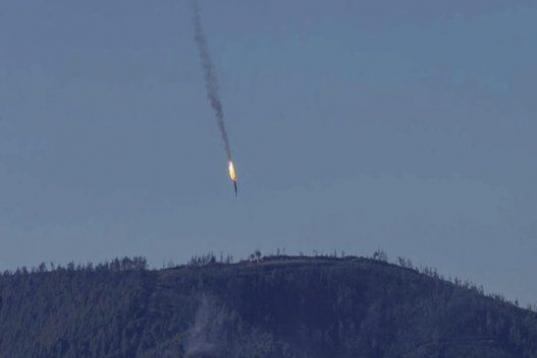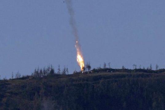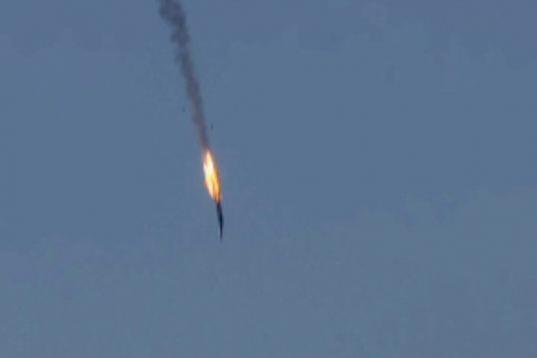 Las Fuerzas Aéreas turcas han derribado este martes a un cazabombardero SU-24 ruso cerca de la frontera sirio-turca. Sus dos pilotos han logrado saltar del aparato en llamas, pero, según el líder de una brigada turcomana, han sido abatidos mientras aterrizaban en paracaídas.