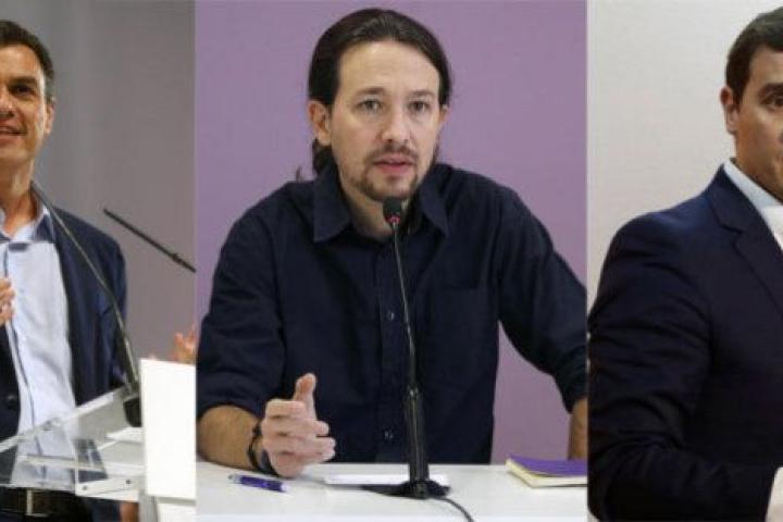 Encuentro entre los candidatos Pedro Sánchez, Albert Rivera y Pablo Iglesias en 'El Huffington Post'