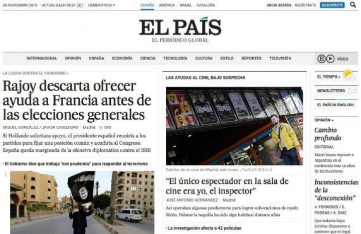 "Francia suma apoyos contra el Estado Islámico", concluye El Periódico tras el apoyo del premier británico al presidente francés. Sin embargo, Le Figaro analiza la postura de algunos de los eventuales aliados y concluye que ninguno de ellos lo tiene tan claro. Por ejemplo, "Estados Unidos espera saber más de las intenciones francesas"; "Moscú juega la carta francesa para poner en evidencia a Washington" y "la opinión alemana reticente a una intervención militar". ¿Y en España? "El Gobierno descarta ofrecer ayuda a Francia antes de las elecciones", leemos en El País, que explica que "si Hollande solicitara apoyo, Rajoy intentaría buscar una posición común con los partidos y acudiría al Congreso". El motivo, explica Fernando Garea, es que no quiere un "no a la guerra" como el que llevó a Aznar a realizar una pésima gestión tras los atentados del 11M.