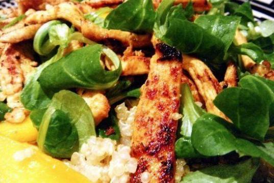 "El dulzor del mango y el toque picante del pollo crujiente hacen de esta ensalada un plato delicioso", dice la autora de este plato.