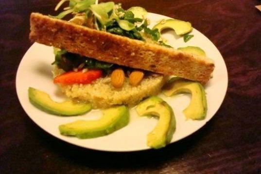 Con espinacas, menta, brotes de alfalfa, aguacate, semillas y frutos secos.