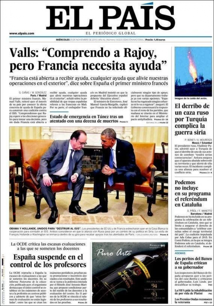 Para lanzar mensajes a los países vecinos. A España, nos cuenta Gabriela Cañas en El País, Valls dice: "Comprendo a Rajoy, pero Francia necesita ayuda; cualquier ayuda que alivie nuestras operaciones en el exterior".