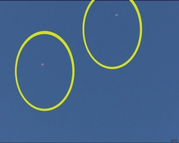 Captura de video facilitada por HaberTurk que muestra a dos pilotos que saltan en paracaídas