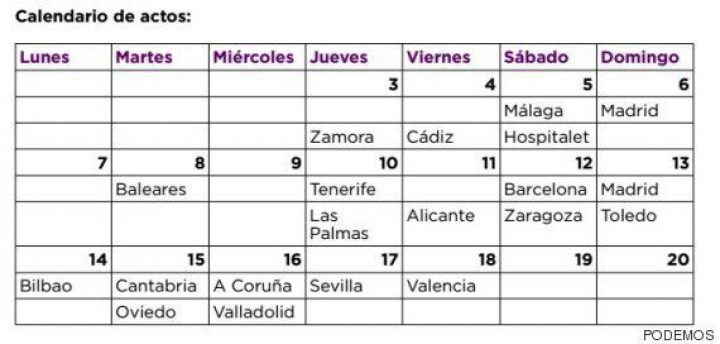 También tendrá un papel especial Madrid, donde Podemos celebrará el mitin central de la campaña el domingo 13, previsiblemente en uno de los grandes municipios del denominado 'cinturón rojo' del sur de la Comunidad, que Podemos quiere transformar en "cinturón morado".