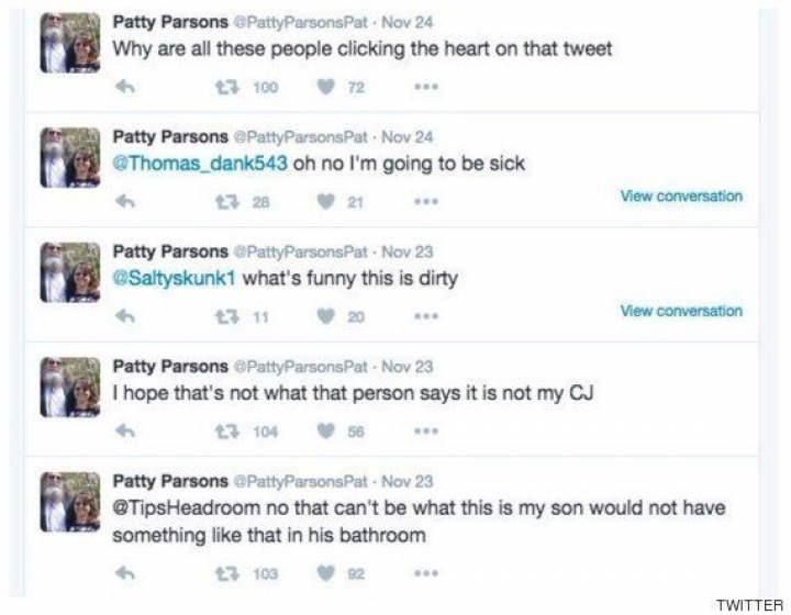 Patty Parsons parece ser un amorosa madre cristiana, a juzgar por su biografía de Twitter. Hace poco que se abrió la cuenta en esta red social y aún no sabe bien cómo usarla, así que cuelga todo lo que se le ocurre. Hace unos días, aprovechó para hacer una pregunta a sus seguidores: ¿qué es esto que hay en la ducha de su hijo?