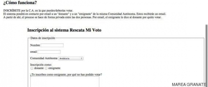 Así nació la campaña Rescata Mi Voto, que busca poner en contacto a "donantes" de votos con "emigrantes" que no pueden votar. Lo hace a través de la web de la Marea Granate, donde sólo hay que rellenar un formulario para inscribirse.