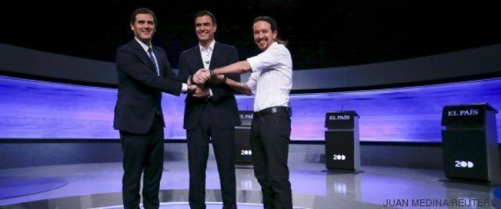 Sánchez, Rivera e Iglesias se tenían ganas. El escenario del combate televisivo ha sido un estudio de cine en una localidad cercana a Madrid, cuyos pasillos estaban decorados con carteles de películas de Michael Haneke y Jia Zhangke. La fría Boadilla del Monte se ha convertido en el epicentro político del país durante este lunes por la noche gracias a candidatos ambiciosos, asesores obsesionados con calentar los corazones de los votantes y periodistas ansiosos por un buen combate dialéctico.