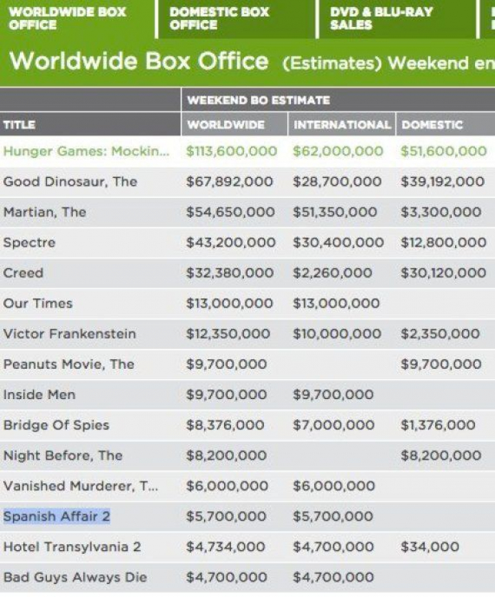 Este último dato no lo repitió en esta ocasión, pero casi. Ocho apellidos catalanes se quedó este fin de semana en el puesto número 13 del ranking internacional de Rentrak, lo que la coloca igualmente en la lista top.