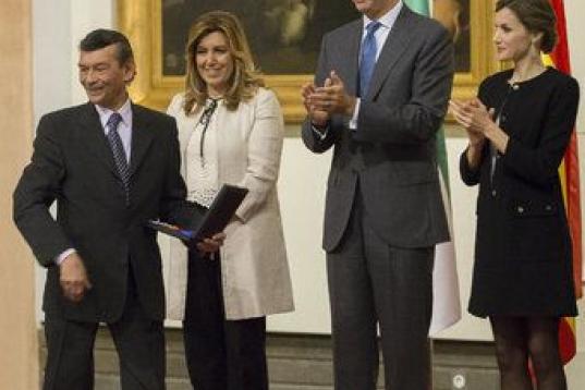 El rey Felipe VI y la la reina Letizia han entregado este miércoles en Sevilla las Medallas de Oro al Mérito en las Bellas Artes 2014, concedidas por el Consejo de Ministros a propuesta del Ministerio de Educación, Cultura y Deporte. En total, se ha premiado a 25 personas y entidades, entre ellas la cantante Alaska, el torero Manuel Benítez El Cordobés, la actriz Blanca Portillo, el escritor Rafael Sánchez Ferlosio o la joyera Helena Rohner.