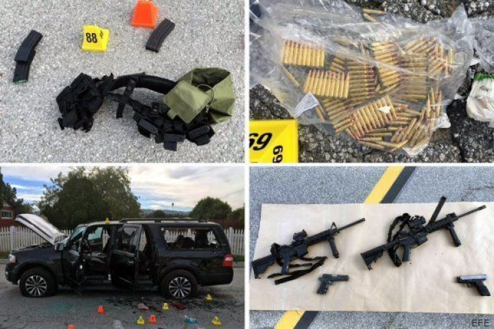 Armas y municiones que cargaban los sospechosos involucrados en el tiroteo en San Bernardino