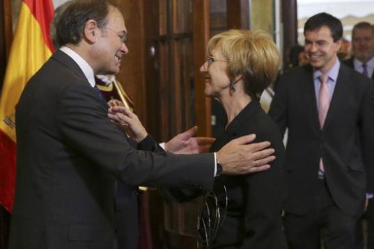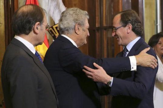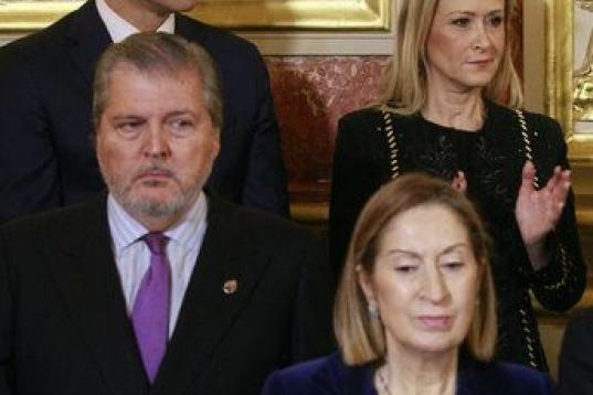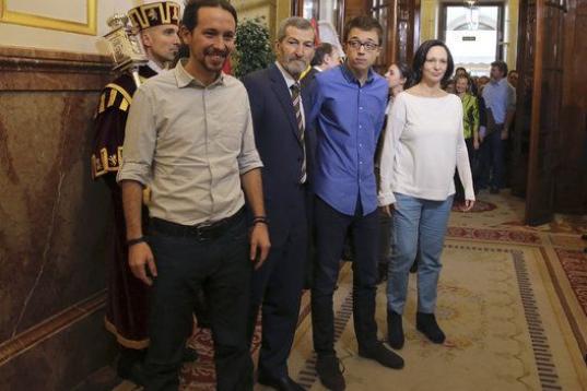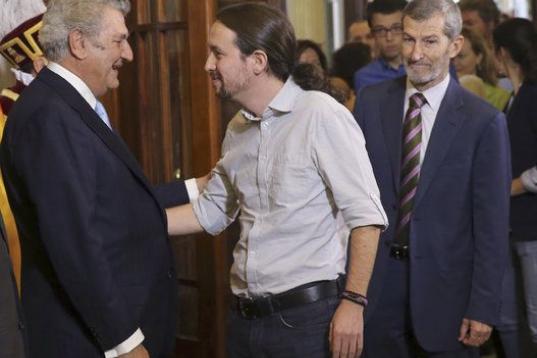 El presidente del Congreso, Jesús Posada, que se ha acercado a besar a la vicepresidenta, ha afirmado estar algo sorprendido porque Iglesias no haya aplaudido su discurso institucional, en el que ha mencionado a Podemos de refilón, aunque "casi mejor, porque igual me aplaude y me hunde", ha exclamado con humor.