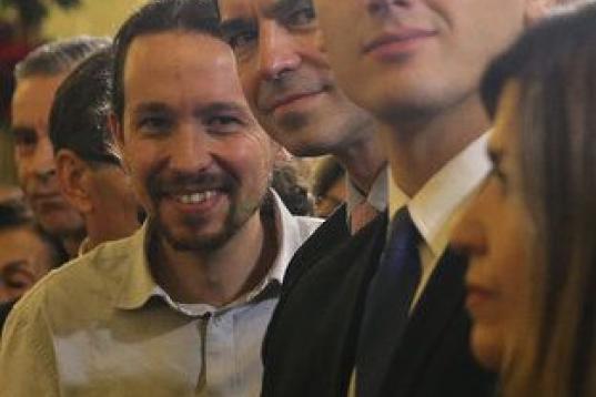 Se ha sudado hoy mucho en el acto de la Constitución, tanto que a algunos como a Albert Rivera le caían las gotas intentando hacerse un hueco, y lo mismo le ha pasado a Pablo Iglesias y a todo el mundo que hoy no ha querido perderse la primera recepción constitucional de los dos líderes emergentes.