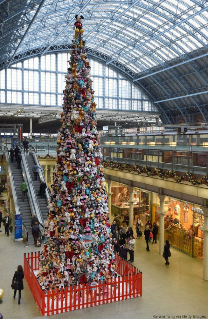 Alrededor de 200 juguetes se usaron para crear este árbol temático de Disney que se encuentra en la estación internacional de St. Pancras.