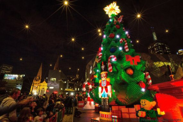 Alrededor de medio millón de piezas de Lego se usaron para hacer este árbol de la Plaza de la Federación en Melbourne.