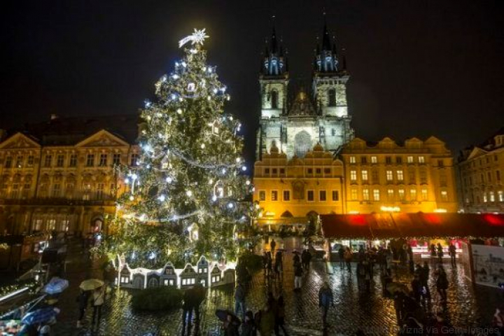 Este deslumbrante árbol está situado junto al mercado de Navidad de la plaza de la Ciudad Vieja.