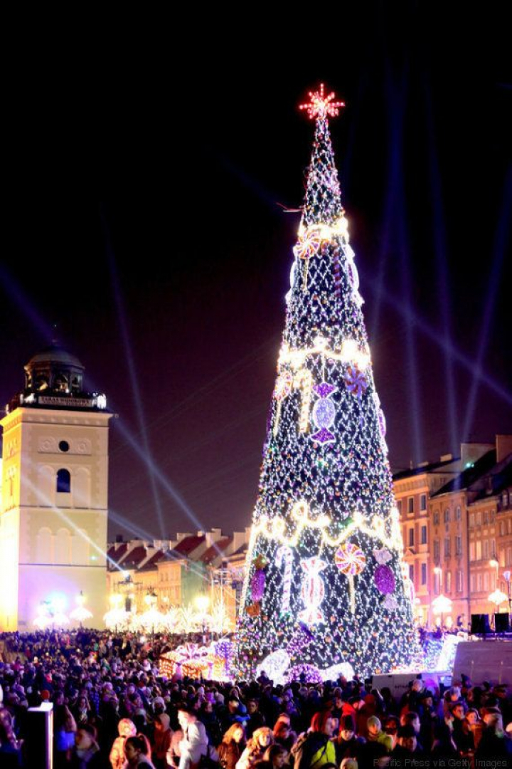 El árbol de la plaza vieja de Varsovia se iluminó el día antes de San Nicolás. La fiesta es religiosa, a la vez que una buena ocasión para que Papá Noel visite a los niños y les lleve regalos.