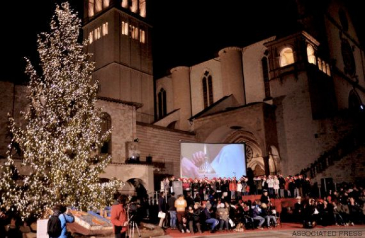 El Papa Francisco encendió simbólicamente desde el Vaticano este árbol situado a kilómetros de distancia. El Pontífice también encendió una vela como símbolo de esperanza para los inmigrantes.