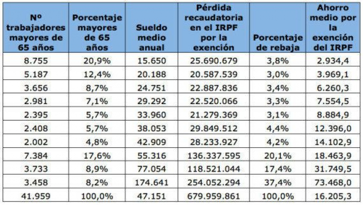 La exención total del pago de IRPF para las personas que sigan trabajando una vez pasada la edad legal de jubilación le costaría a las arcas públicas 680 millones de euros, según los cálculos de los Técnicos del Ministerio de Hacienda (Gestha). Según el secretario general de Gestha, José María Mollinedo, esta propuesta y la que afecta a los jóvenes atacan tres principios constitucionales: capacidad contributiva, justicia tributaria y equidad.