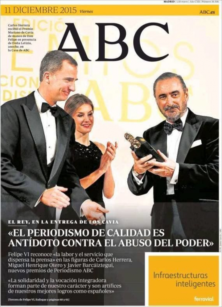 "El presidente del Gobierno dejará el Consejo de Ministros para grabar su intervención del sábado en el programa 'Qué tiempo tan feliz' de María Teresa Campos". Se trata de una situación singular, toda vez que Mariano Rajoy se resistía hasta hace unas semanas a cualquier presencia televisiva. "El espectáculo televisivo se apodera de la campaña". Esta es la conclusión a la que llega Fernando Garea en su información de apertura en El País en la que recuerda que Pedro Sánchez ha pasado por 11 programas de televisión.