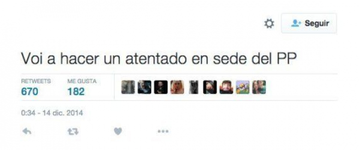 El País informa de que el joven ha asegurado que estaba "muy contento" de lo que había hecho" cuando ha sido detenido. "Insistía en que estaba muy contento y que volvería hacerlo", afirman fuentes policiales a ese diario, que resalta que al joven podrían caerle hasta seis años de prisión. Aunque al ser menor de edad esa pena podría verse rebajada.