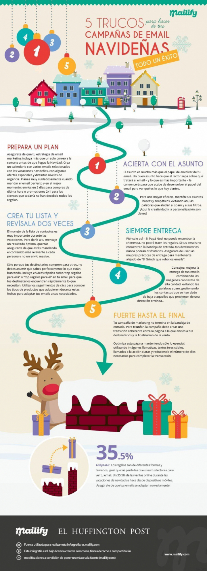 Para quienes estén preparando la campaña de emails navideños, Mailify ha elaborado esta infografía con cinco trucos para que los emails no acaben en la bandeja de spam. ¡Feliz y próspera newsletter!