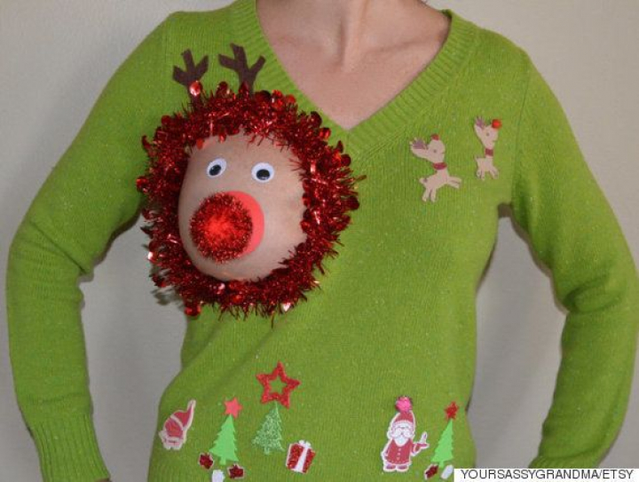 Estas fiestas son una época propicia para desempolvar esos jerseys feos de Navidad. Los hay de todos los estilos y tamaños: para niños, adultos, bebés... y hasta para mascotas. Sólo era cuestión de tiempo que inventaran uno para madres que dan el pecho: