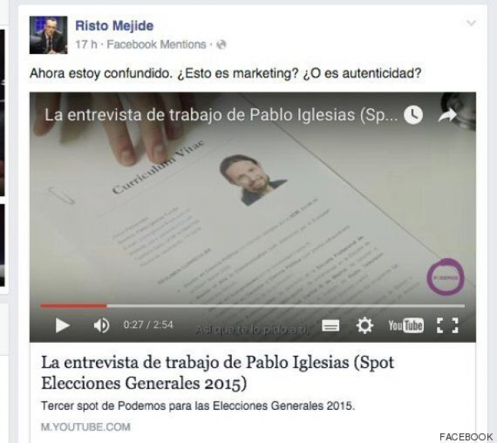 El último anuncio electoral con el que Pablo Iglesias pretende llegar al corazón de los españoles ha reabierto el enfrentamiento de la autenticidad entre Risto Mejide y 'coleta morada'.