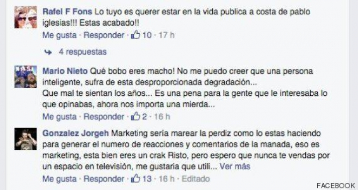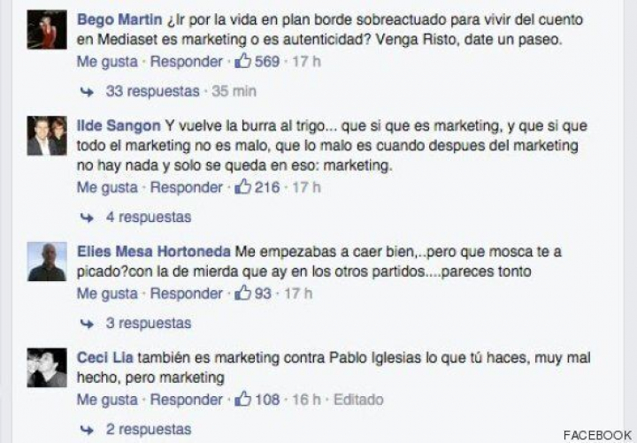 El presentador de 'Al rincón', que ya cuestionó el pasado domingo a Iglesias por confrontar "marketing" con "autenticidad" y se llevó un pequeño rapapolvo en su muro de Facebook, ha vuelto a sacar el tema... y cosechado el mismo resultado.
