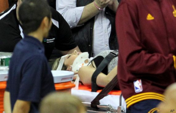 Nadie pudo hacer nada por evitar que los 2,03 metros y 108 kilos que pesa el jugador cayeran sobre la esposa de Day, que tuvo que ser sacada del sitio en camilla y con el cuello inmovilizado.