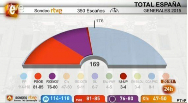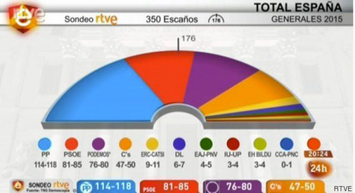 Sondeo TVE elecciones 2015: El PP ganaría sin mayoría y Podemos, segundo en votos