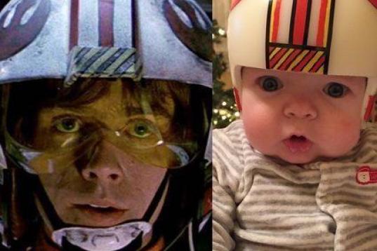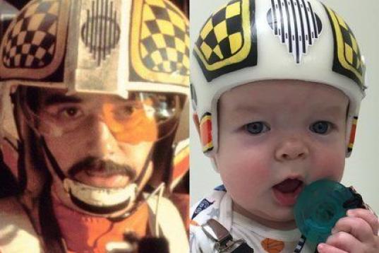 Tras someterse a una operación para que su cabeza pudiera crecer normalmente, el casco era necesario para proteger su cráneo mientras se recuperaba de la intervención y para que guiara su crecimiento hasta que cumpliera un año. Para hacer esos nueve meses hasta entonces más llevaderos para la familia, Jonathan decoró los cuatro cascos de su hijo con diseños de Star Wars.