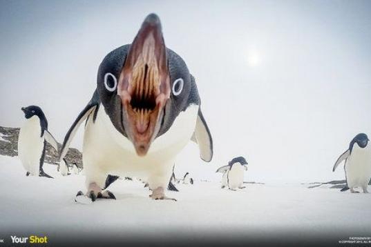 El miembro de Your Shot Clinton Berry capturó esta imagen con una GoPro en el hielo del océano Antártico, a unos nueve kilómetros de Casey Station. "Estudié los movimientos de los pingüinos durante semanas", escribe Berry. "Caminaban por l...