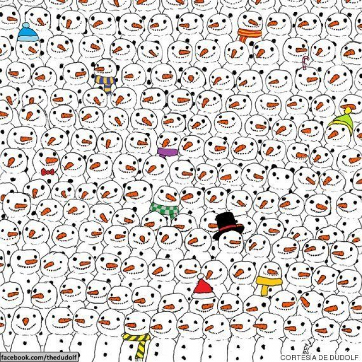 ¿Eres capaz de encontrar el panda escondido entre los muñecos de nieve?