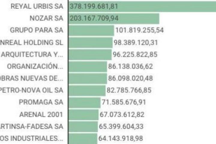 También figuran el Grupo Intereconomía, con una deuda de 7,3 millones de euros; Polaris World, con 10,92 millones; Fotoprix, con 6,52 millones; Vértice 360, con 10,18 millones; Fergo Aisa, con 13,08 millones; la productora Laurenfilm, con 8,1 millones de euros; el Balneario de Mondariz, con 2,9 millones de euros, el Coto Minero Cantábrico, con 3,71 millones; o Gran Tibidabo, con 9,5 millones de euros.