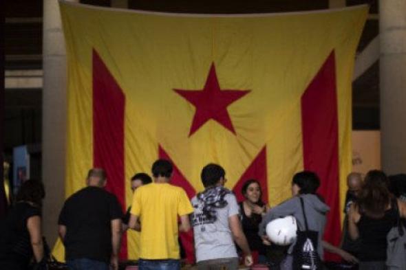 Diputados del PPC muestran banderas españolas y catalanas tras aprobarse en el Parlament de Cataluña la resolución conjunta de Junts pel Sí y la CUP que pretende ser el inicio del proceso hacia la independencia de Cataluña.