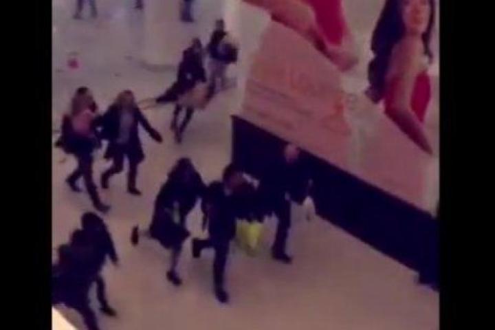 Dos vídeos publicados en Twitter muestran el momento de pánico vivido en el interior del centro comercial y cómo los agentes, instantes después, se llevan un machete de grandes dimensiones.