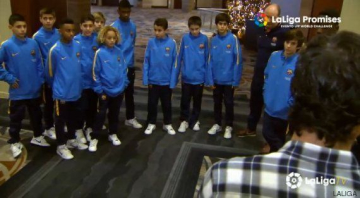 En un vídeo publicado por la propia Liga en su página web, se puede ver cómo Raúl saluda a varios equipos y se detiene a charlar con los responsables del Barcelona y con los chavales, a los que anima a pasarlo bien y con los que se cita "mañana en el campo".