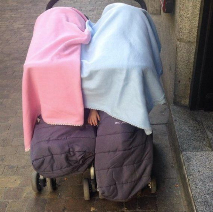La foto más polémica de estas Navidades nos llega desde Madrid. Allí, el mismo día 25 de diciembre en la céntrica Plaza de Jesús, justo delante de la Iglesia de Medinaceli, dos niños duermen en un carro de paseo gemelar en plena calle mientras sus padres permanecen dentro de un bar. Diez minutos después, uno de los niños arranca a llorar. En ese momento, la madre sale y se van.