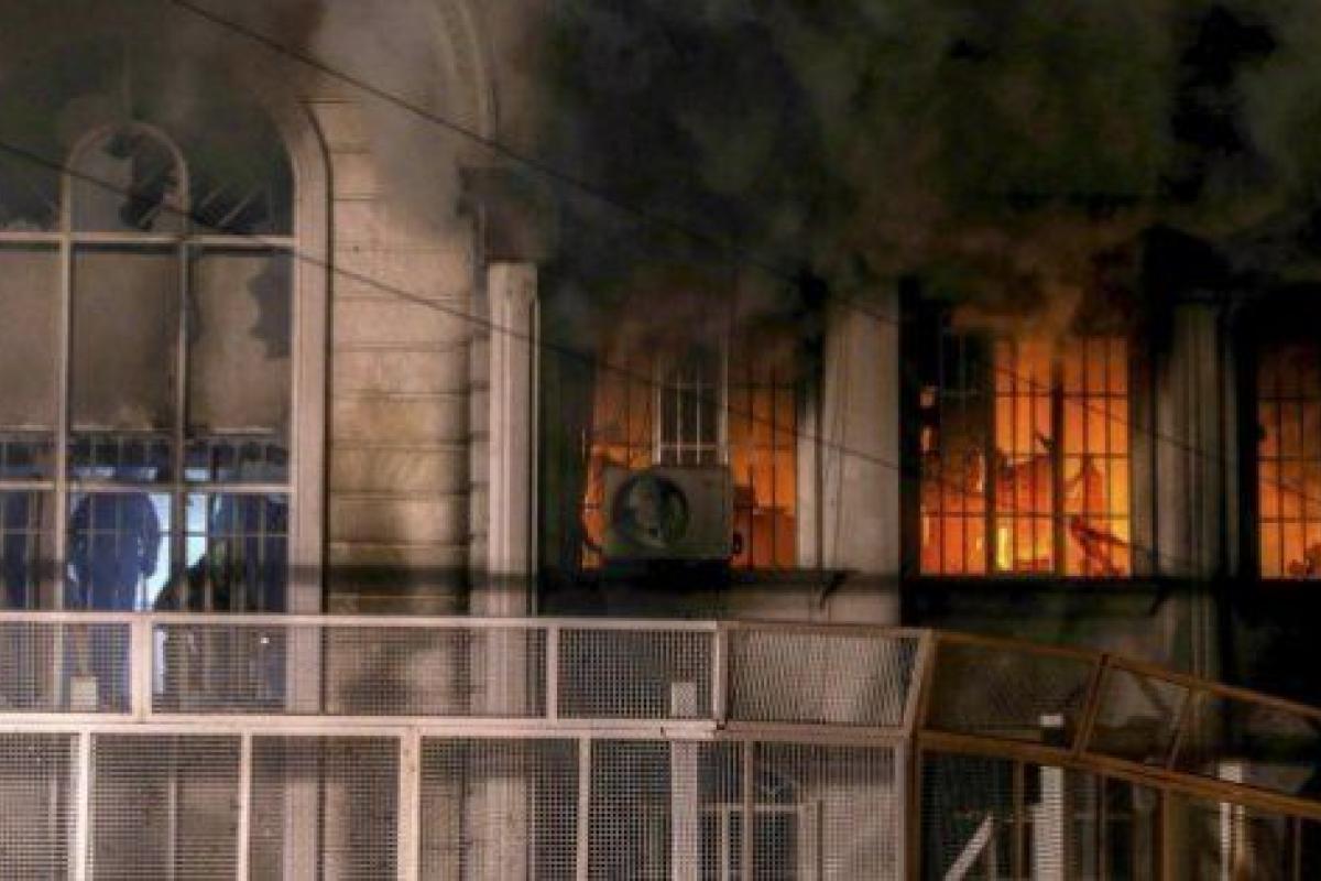 Según informó la agencia Isna los manifestantes se reunieron frente a la embajada saudí gritando proclamas contra ese país y algunos penetraron momentáneamente en la legación diplomática, que registró varios incendios en su interior por el lanzamiento de cócteles molotov y que los bomberos sofocaron poco después.