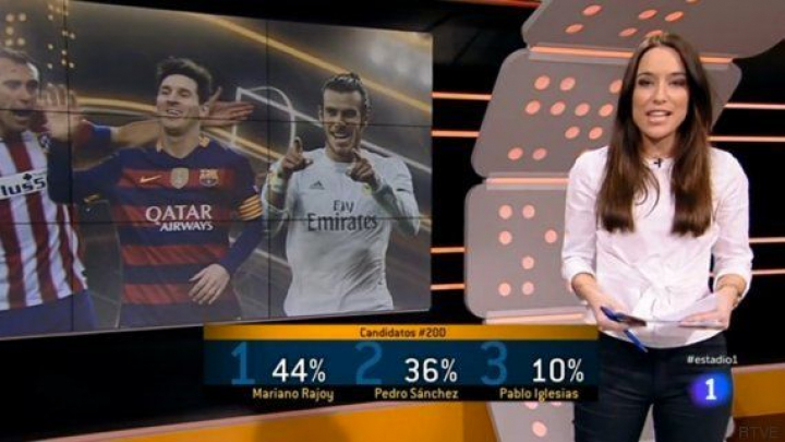 A la media hora de emisión del programa deportivo Estadio 1, de TVE, los espectadores lo tenían claro: el mejor jugador de la jornada de fútbol había sido el presidente del Gobierno en funciones, Mariano Rajoy, con el 44% de los votos.
