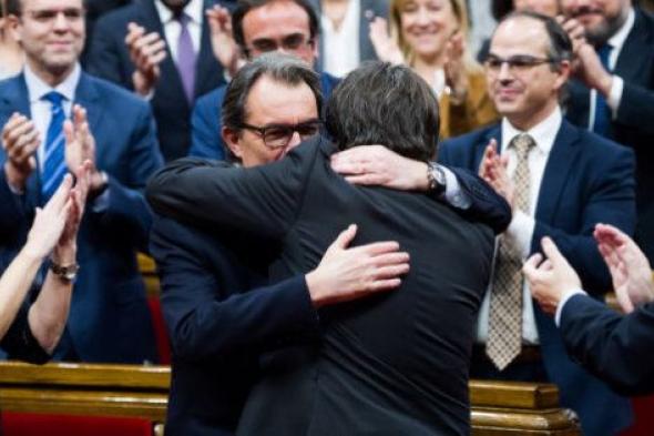 Puigdemont fue investido el lunes en primera votación por mayoría absoluta con 70 votos a favor -62 de JxSí y 8 de la CUP-, dos abstenciones de la CUP y 63 votos en contra de Ciudadanos, PSC, Catalunya Sí Que Es Pot y PPC.