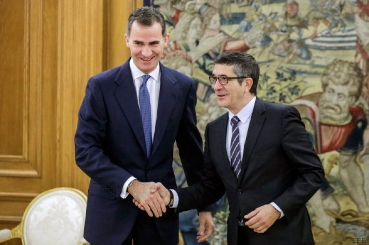 "¿Cómo estás?", le ha preguntado el exlehendakari vasco. Tras posar unos segundos ante las Cámaras, Felipe VI ha invitado a López a entrar en el despacho. A las 12.00 horas, el monarca ha recibido en Zarzuela al presidente del Senado, Pío García-Escudero, que repite mandato.