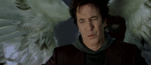 - Interpretó a Metatrón, lla voz de Dios, en Dogma, donde también aparecía el actor Jason Mewes, que tenía problemas con las drogas. La presencia de Rickman le hizo comportarse como nunca en un rodaje. Se aprendió de memoria, no sólo su papel, sino el guión entero. En sus propias palabras: "No quería hacer enfadar al tío ese".