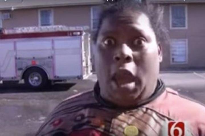 Se llama Michelle Dobyne y vive en el condado de Tulsa, en Oklahoma (EE.UU.). El edificio en el que residía se incendió y allí estaba la televisión local para recoger los primeros testimonios. Premio.