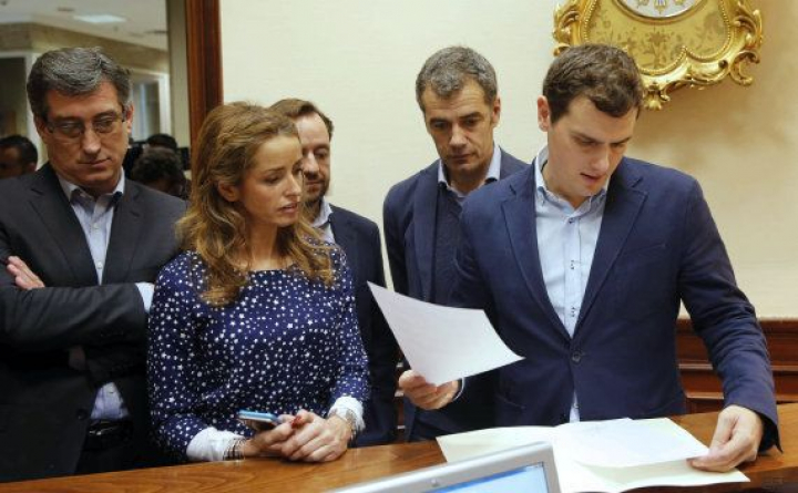 Albert Rivera (d), acompañado de los diputados de su formación Toni Cantó (2-d), Patricia Reyes e Ignacio Prendes (i)