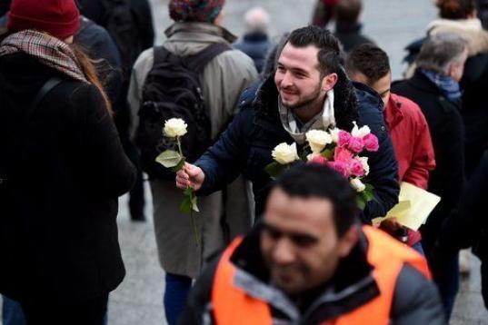 Flores y sonrisas para las mujeres de Alemania. Durante todo el fin de semana, grupos de refugiados han repartido flores en las principales ciudades de Alemania, como Berlín, Colonia o Munich, en un intento de desterrar el fantasma de que extranjero o peticionario de asilo es igual a agresor, a violento, a violador.