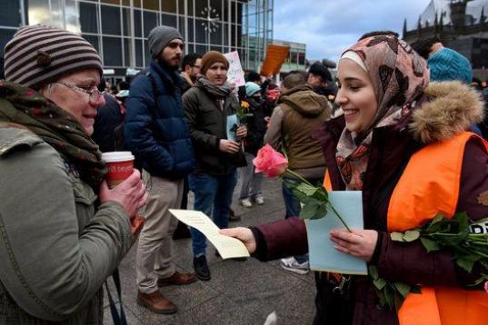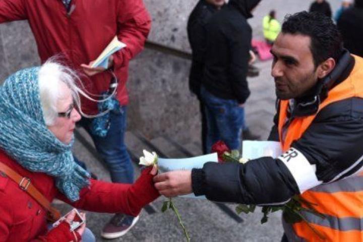 Grupos de refugiados regalan flores a los ciudadanos tras las agresiones a mujeres en Alemania