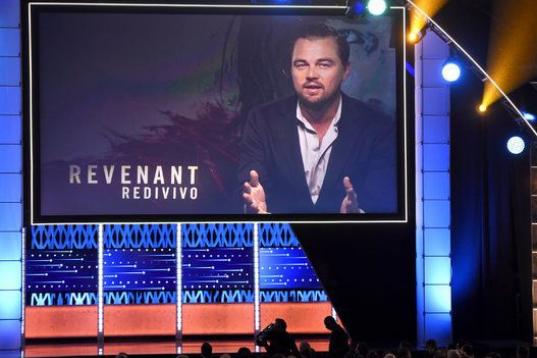 Los gustos de la crítica suelen distar bastante de los de la prensa y de la de los académicos de cine, tal y como se demostró anoche en 21ª edición de los Critics' Choice Awards (los premios de la Crítica, que se celebraron la noche del domingo 17 de enero). Sin embargo, hubo algunas salvedades, como Leonardo DiCaprio, que con el reconocimiento de los críticos se posiciona como firme candidato al Oscar, y Sylvester Stallone, que también se llevó el galardón a mejor actor secundario por Creed. Sin embargo, DiCaprio no pudo agradecer su premio en directo, y lo tuvo que hacer a través de una gran pantalla situada sobre el escenario.