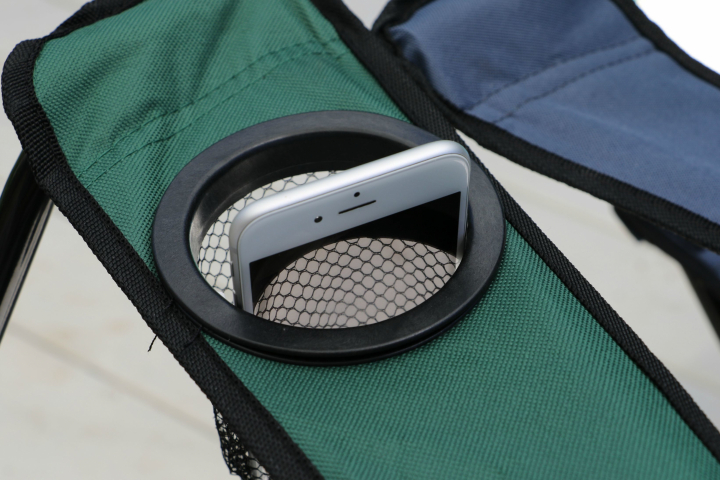 En ella se puede ver el teléfono en cuestión dentro del agujero de una silla de camping pero parece que al terminal le falta un trozo.